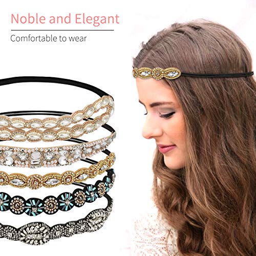 E-More 5 fasce per capelli con strass, fatte a mano con diamanti elastici per capelli con perline di cristallo vintage per capelli accessori per donne e ragazze