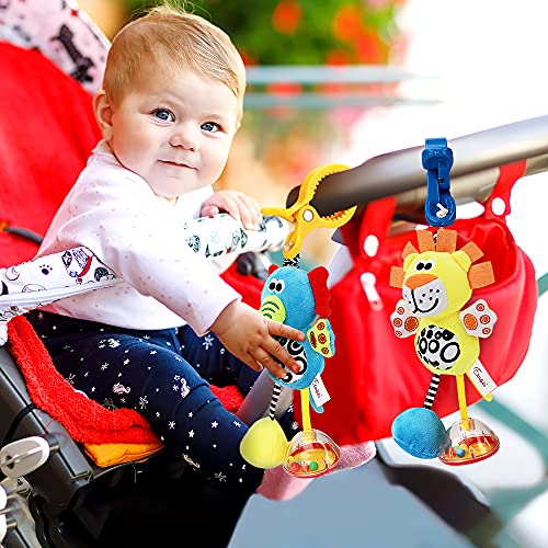 Clip per giocattoli da appendere su carrozzina e passeggino: progettati con una clip, i giocattoli per passeggino possono essere appesi a un passeggino o seggiolino auto o a un letto per i bambini con cui giocare ovunque. I sonagli giocano con campane e spremere il suono BB per un gioco multisensoriale, ideale per divertirsi a casa o in viaggio.