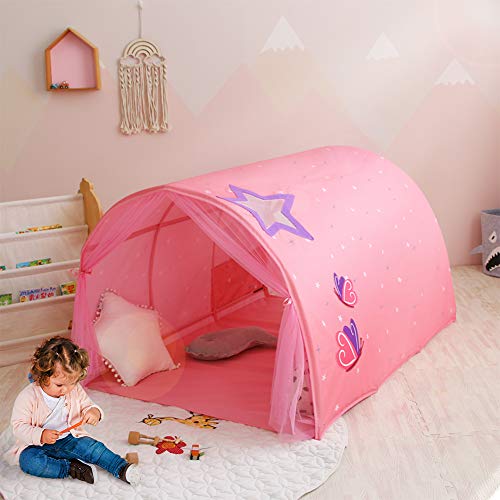 SICURO E DIMENSIONI: la casa da gioco per bambini è realizzata in poliestere impermeabile di alta qualità, atossico, sicuro, privo di odori chimici e sostanze nocive. Facile da pulire con un panno umido. Dimensioni della tenda da gioco: 140x100x80 cm, abbastanza grande, adatta per la maggior parte dei letti gemelli. Area giochi ideale durante il giorno e una divertente esperienza di sonno durante la notte.