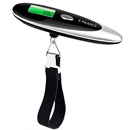 E-PRANCE Bilancia bagaglio digitale, bilancia valigia,bilancia bagaglio digitale e-pavoneggiano con funzione Lock/Tara, display LCD retroilluminato, capacità 50kg/110Lb per viaggi, casalinghi, Nero