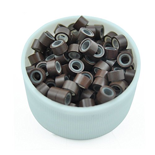 E-TING 1000 pezzi 5 mm Colore marrone scuro Micro anelli in silicone di perline per le estensioni dei capelli con punta a I