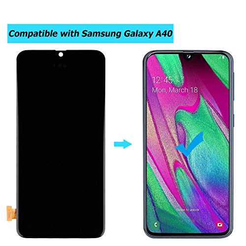E-YIIVIIL Display AMOLED di ricambio compatibile con Samsung Galaxy A40 SM-A405F, SM-A405FN, SM-A405FM di ricambio per riparazione LCD Touch Screen con toolkit (nero senza cornice)