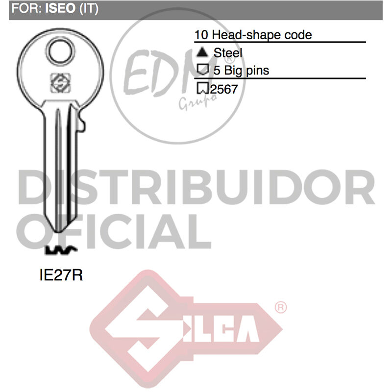 Acquista su Patner Iberia i migliori strumenti e accessori per la casa e il lavoro > Riferimento: E3/12108 Chiave in acciaio Iseo Ie27R
