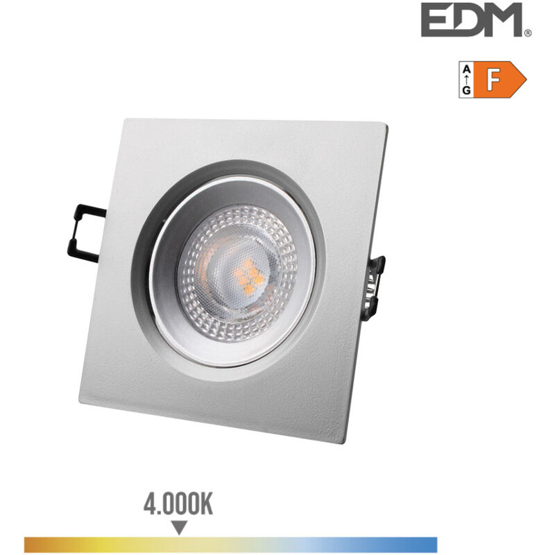 Downlight a led da incasso 5w 380 lumen 4.000k cornice cromata quadrata edm incastro ø7.4cm