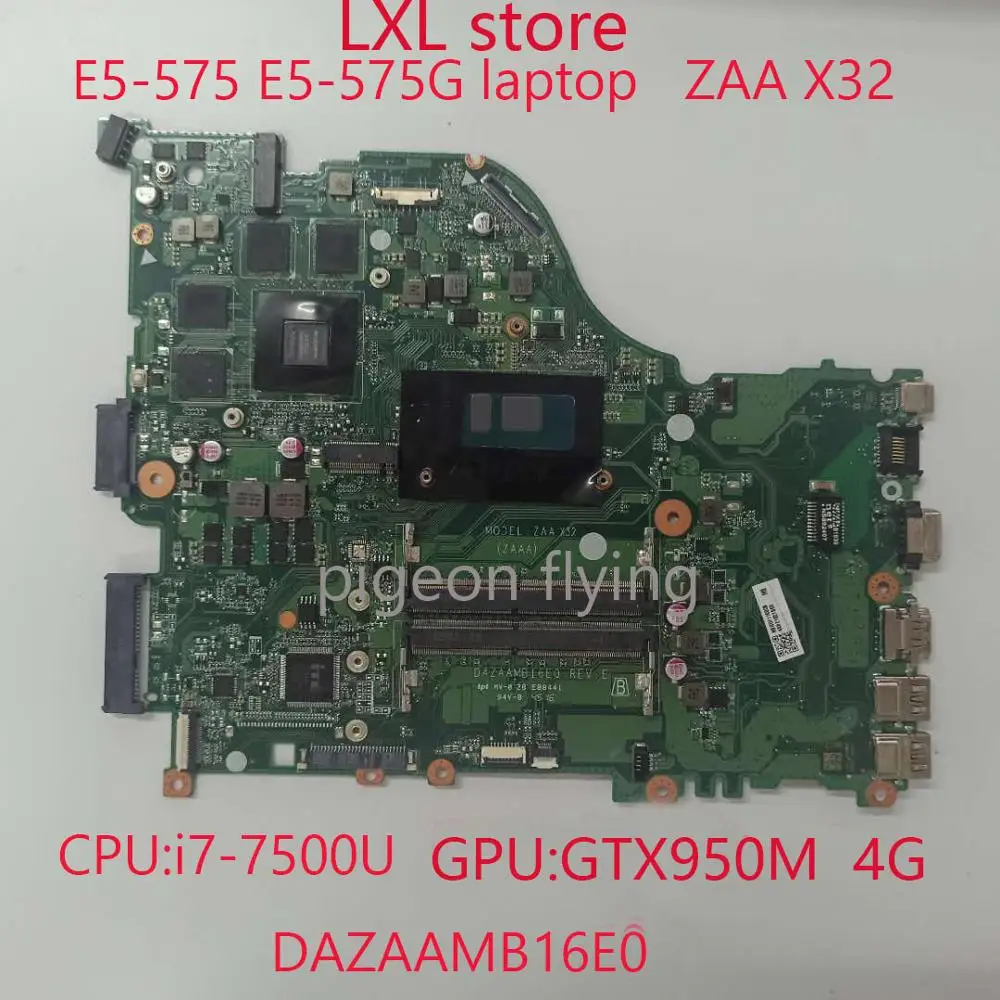 ZAA X32 for Acer E5-575G motherboard mainboard DAZAAMB16E0 E5-575 laptop CPU:i7-7500u GPU:GPU:GTX950M 4G DDR4 100% test ok