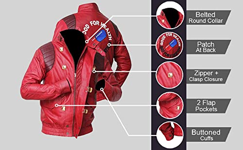 E_Genius Akira Manga Series Shotaro Kaneda Pill Capsule Rosso Biker Costume Cosplay Giacca Bomber in pelle Uomo, Rosso, XL