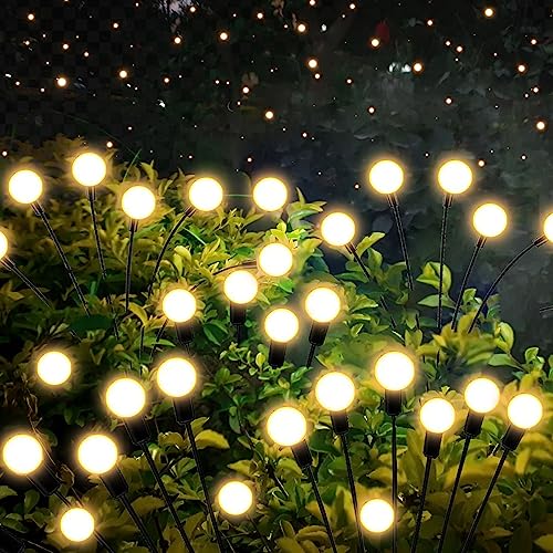 【LUCI FIREFLY SOLARI ESTERNO】Luci solari da giardino le lucciole lo accendono per renderlo un grande creatore di un'atmosfera romantica. Gli steli sono morbidi ed elastici, quindi le lucciole fluttuano al vento,ogni lampadina LED emetterà una luce bianca calda, la luce danzante rende il vostro giardino e patio più caldo e attivo! perfette per la casa, il giardino, la decorazione del paesaggio, il cortile, il patio, la passerella