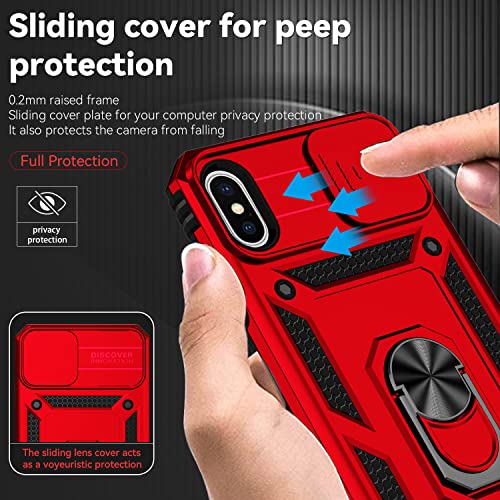 Eabhulie Cover iPhone XS/X, Custodia Protettiva Resistente con Supporto ad Anello e Copertura per Fotocamera Scorrevole per iPhone XS/iPhone X Rosso