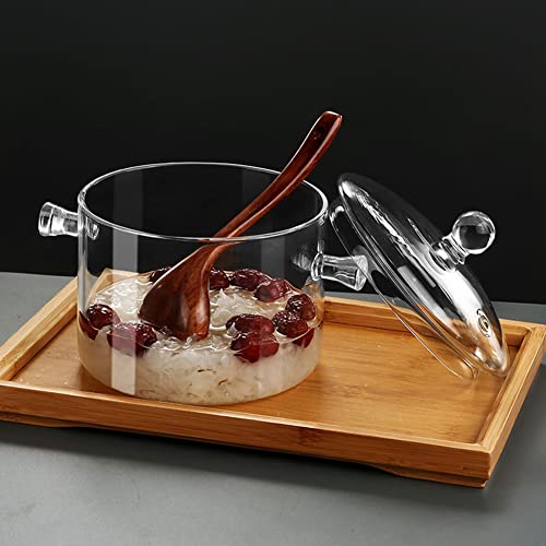 Eachave Pentola in vetro da 1,5 l/50 oz per cucinare, padella in vetro trasparente resistente alle alte temperature con doppio manico e coperchio, casseruole