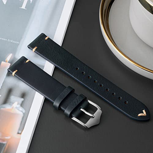 [Materiale del cinturino] EACHE offre due tipi di cinturini in pelle, il Crazy Horse Leather e la pelle italiana cerata a olio, ciascuno con le proprie caratteristiche. La parte inferiore del cinturino è realizzata in pelle di vitello naturale per una vestibilità confortevole.Per le più svariate occasioni di cinturini orologio uomo, cinturino orologio donna, e cinturino smartwatch.