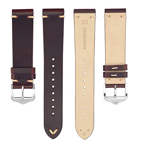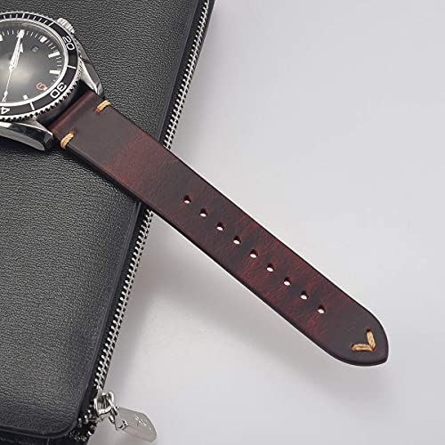 EACHE Cinturino Vintage da 20mm, Cinturino in Pelle Rossa Cerata a Olio, Cinturino da Uomo