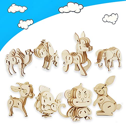 EACHHAHA Puzzle 3D Legno Bambini 6 7 8 Anni,Fai-da-te Costruisci Giocattoli Kit,4 pezzi,gallo/coniglio/fulvo/scimmia