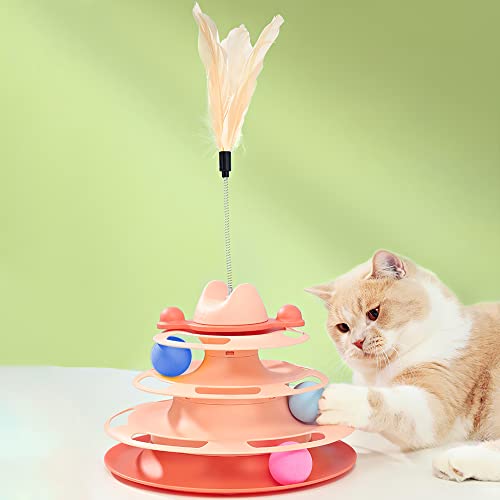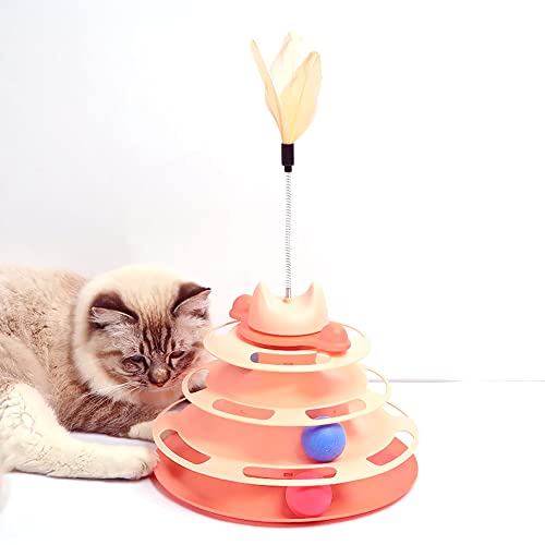 EACHPT Giochi Per Gatti, 4 strati Giochi Per Gatti In Casa, Giocattolo Gatto, con giocattolo bacchetta piuma di gatto, divertente rullo ginnico, 3 palline colorate, palla da pista girevole (arancia)