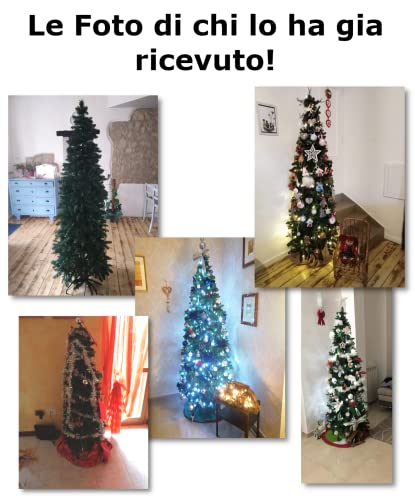Eacommerce Albero di Natale Slim Folto Verde Rami in PVC con Apertura ad Ombrello Salvaspazio Ignifugo Sottile Stretto (Altezza 210 cm - Diametro 80 cm)