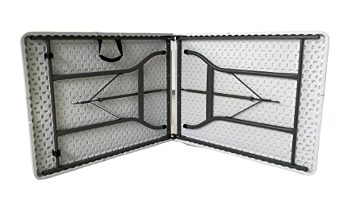 ⭐ Tavolo pieghevole e richiudibile in plastica HDPE ad alta densità di colore bianco. Ripiano con spessore maggiorato anticurvatura. Robusta struttura in acciaio verniciato grigio da 22 mm. Piedini Antiscivolo.