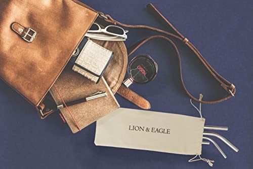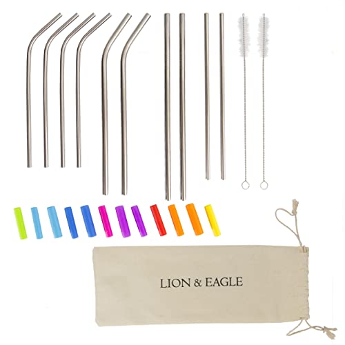 LION AND EAGLE Set di 12 cannucce riutilizzabili in acciaio inox, punte in silicone, 2 spazzole per la pulizia e un sacchetto- perfetto per accompagnare le vostre bevande cocktail: frullato, mojito, tè, mate