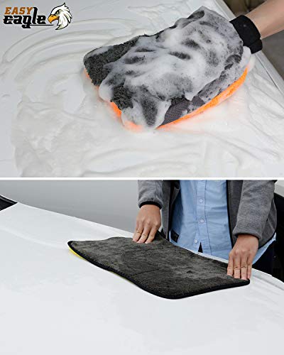 EASY EAGLE Guanto Lavaggio e Panno Asciugatura, Kit Pulizia Auto, in Microfibra