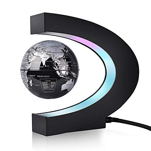 √ Global Gadget & Divertente Decorazione: Il globo magnetico è di circa 3 pollici di diametro, 360 gradi galleggianti e rotanti nel globo di mezz'aria, con luce a LED colorata per renderlo grazioso al buio quando acceso. La rotazione ha bisogno di forza esterna, basta girarla o soffiare.