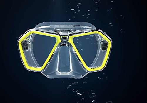 SEAC Eagle, Maschera Compatta a Volume Ridotto per Apnea, Pesca Subacquea e Immersioni Unisex Adulto, Trasparente/Giallo, Standard