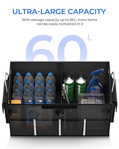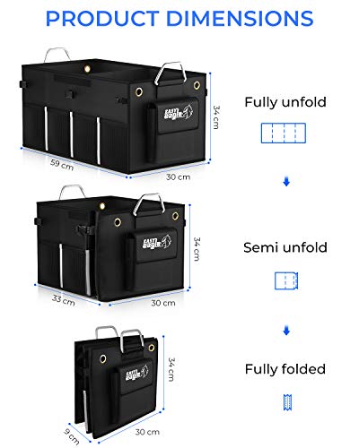 EASY EAGLE 60L Organizer Bagagliaio Auto, Borse per Bagagliaio con Copertina Pieghevole e Fori di Ventilazione, Impugnature Metalliche Robuste, Impermeabile - Nero