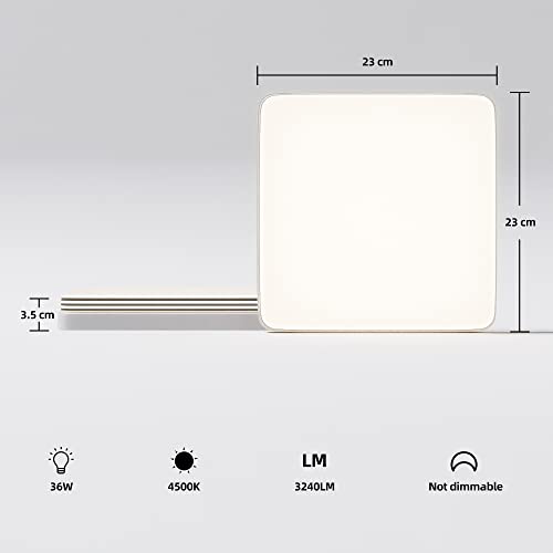 EASY EAGLE Plafoniera LED Soffitto Quadrato 36W, Lampada Plafoniere 3240LM 4500K Luce Bianco Naturale per Camera da Letto, Cucina, Soggiorno, Ufficio, Balcone, Bagno