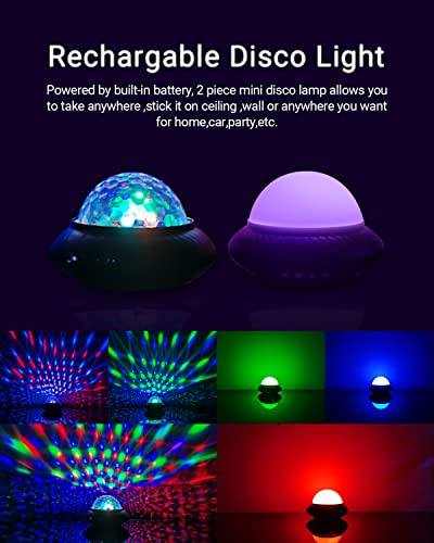 ✨ 【Supporta la ricarica e l'uso】 Questi due set di luci da discoteca supportano la ricarica USB, basta caricarli completamente prima dell'uso, puoi portarli fuori in qualsiasi momento, all'aperto o al chiuso, puoi usarli per decorare lo spazio in un ambiente colorato.