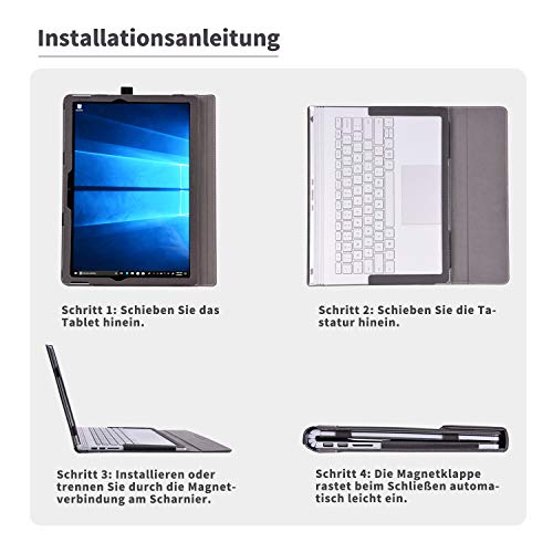 Maggiore protezione: il materiale migliorato offre una presa più forte, il tuo Surface Book non scivola facilmente dalle mani, soprattutto quando si utilizza il tablet. Rimuovere il vecchio design elastico e passare a una chiusura magnetica più comoda e durevole. Si blocca automaticamente quando si chiude magneticamente. Puoi utilizzare il tuo Surface Book ovunque e non hai più paura di romperlo o di avere i normali graffi e graffi