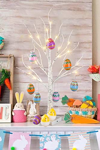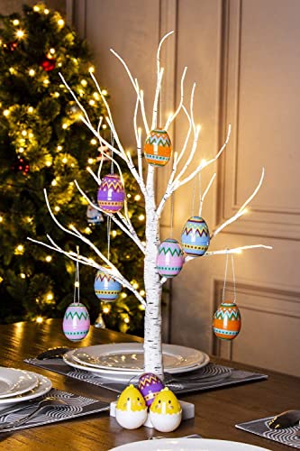 EAMBRITE Albero di Pasqua bianco con uova colorate, albero di ramoscelli a batteria con luci, regali di Pasqua per bambini (60 cm/24 LED)