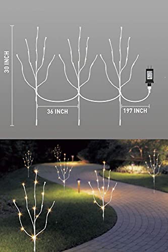 EAMBRITE Set di 3 rami a LED per esterni, a 60 LED, impermeabili, da 76 cm, con luce bianca calda, decorazione a LED per interni ed esterni, ideale per Natale, Pasqua, Halloween