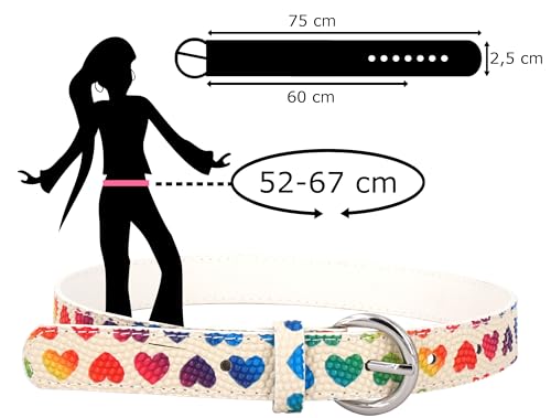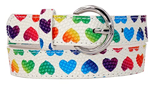 EANAGO Cintura >ARCOBALENO< per bambina - cintura bianca moderna con cuori coloratie per ragazze da circa 3-12 anni - cintura ragazzo cintura bambino