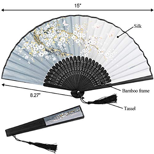 Design elegante: dipingere con fiori e farfalle rende questi fan pieni di freschezza. Ognuno viene fornito con una custodia in tessuto per mantenere il ventilatore sicuro e chiuso quando non in uso. I ventilatori delicati ed eleganti disegnano con lo stile della tradizionale pittura a inchiostro cinese e il delicato pendente a forma di nappa