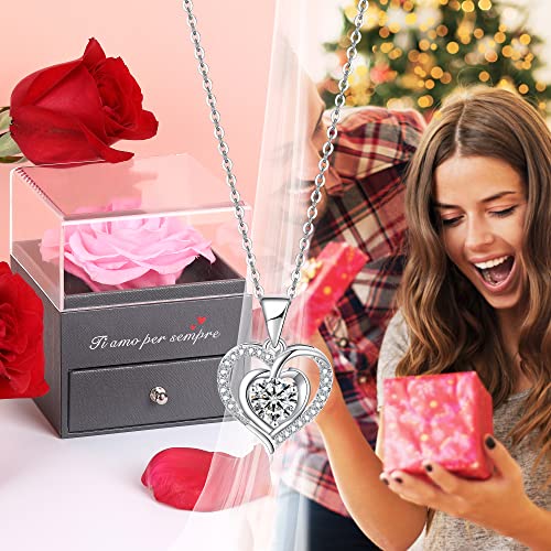 Eaprala Vera Rosa Conservata con Collana e Orecchini, Ti Amo Per Sempre Regali per Donne, Rosa Eterna Regalo per lei a San Valentino,Natale,Festa della Mamma, Compleanno.Regalo per Mamma
