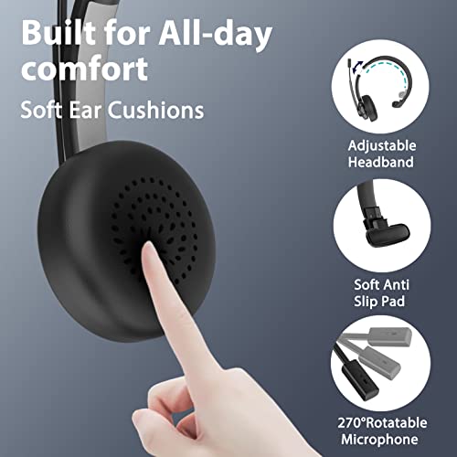 Comode da indossare e batteria a lunga durata: queste cuffie wireless con microfono sono state costruite per il tuo comfort tutto il giorno. È dotato di morbidi cuscinetti auricolari e di una fascia regolabile con microfono a cancellazione del rumore a 270° che consente di regolare l'angolo di utilizzo perfetto. Inoltre, queste cuffie wireless con microfono hanno una batteria ad alta capacità integrata che fornisce fino a 26 ore di conversazione continua e 120 ore in standby con un tempo di ricarica di 2 ore.