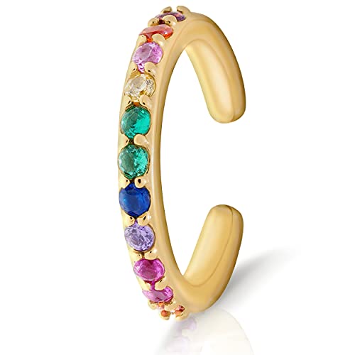 Earcuff - argento sterling 925 placcato oro 18 carati e zirconi - fatto a mano - in elegante confezione regalo, Argento sterling, Zirconia cubica