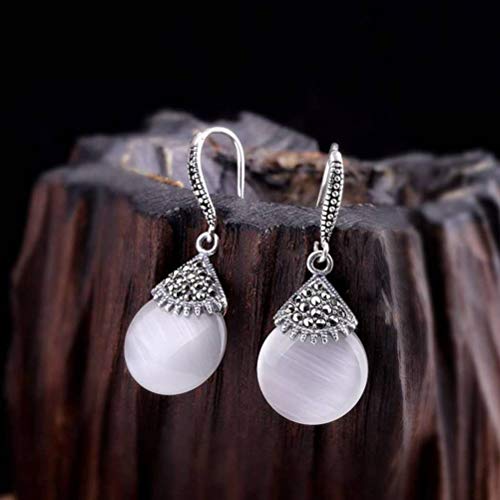 LOt Eardrop Orecchini a Bottone per Le Donne S925 Gioielli in Argento Sterling Moda Creativa Femminile Orecchini Di Granato a GocciaOpale bianco, Argento 925