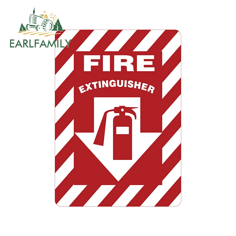 EARLFAMILY 13cm x 9.3cm For Fire Extinguisher on Board Motorcycle Car Stickers Graffiti Decal Creative Car Door Protector