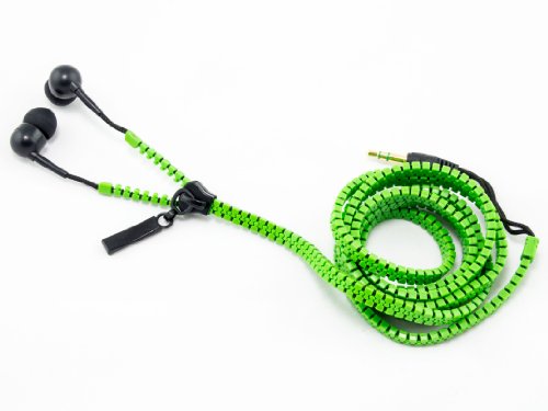 Zip Earphones - Auricolari con cavo a cerniera, con 2 inserti auricolari in silicone, colore verde