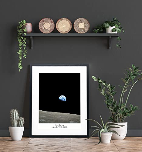 Earthrise Photo Framed Space Wall Art Ready Framed Space Print/Poster spaziali Earth Rise Photo Astronomy Decor Arte della parete della camera da letto Space Posters Gifts for Her (20cm x 25cm)