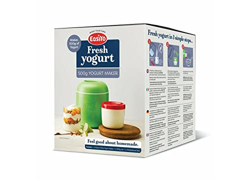 Thos EasiYo mini yogurt maker produce 500 g alla volta utilizzando le bustine di yogurt Easiyo da 500 g, realizzate appositamente per l'uso con questo mini yogurt. EasiYo.
