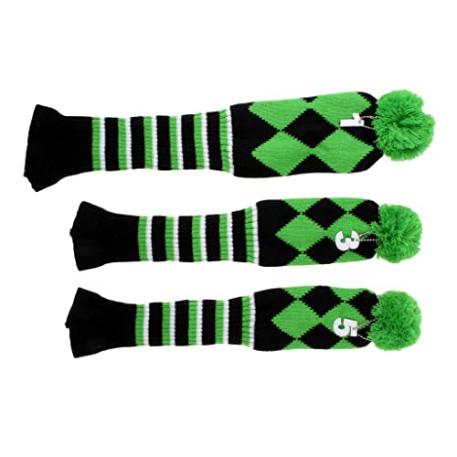 Easnea Set di 3 copri calzini a maglia con pompon 1-3-5 copri testa da golf per golf Dirver/Fairway in legno Golf Club Copricapo Verde Taglia unica (NFL04590)