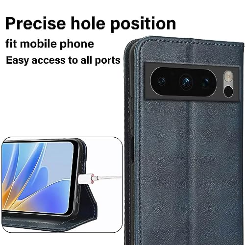 EASSGU Custodia per Google Pixel 8 Pro (6.7" Inches) Pelle PU Flip Folio Cover con Interruttore Magnetico, [3 Slot Schede] [1 Portafoglio] Case - Blu