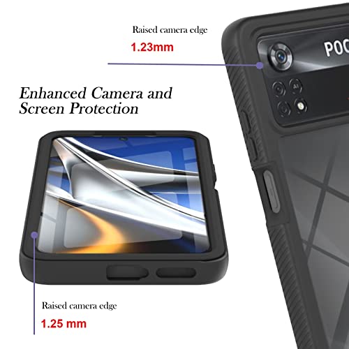 EASSGU Custodia per POCO X4 Pro 5G (6.67" Inches) Cover Protettiva in Silicone TPU e Pellicola Protettiva, Case Protettiva Antigraffio e Antigoccia - Nero