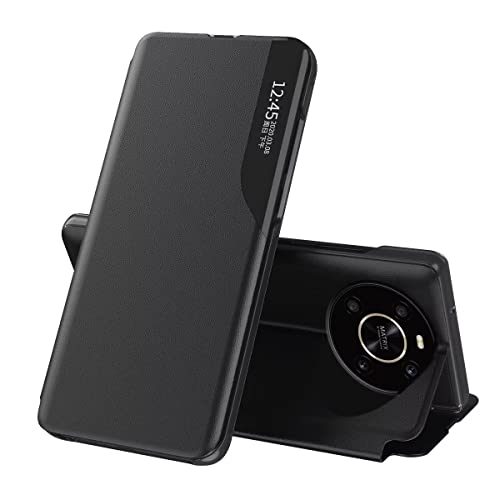 EASSGU Custodia in Pelle per HONOR Magic4 Lite (6.81" Inches) Finestra Laterale Flip Cover in Pelle PU Resistente ai Graffi Custodia Protettiva - Nero
