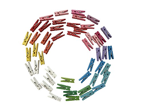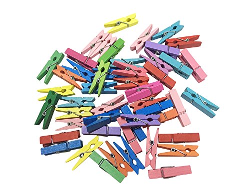 50 mini mollette di legno, ciascuna lunghezza 3,5 cm, colori assortiti.