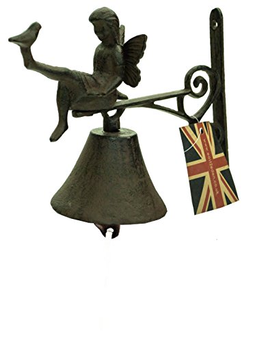 East2eden - Rustico in ghisa Fata Design Vasca per uccelli Mangiatoia per uccelli selvatici decorazione da giardino, Ferro pressofuso, Brown, Fairy Door Bell