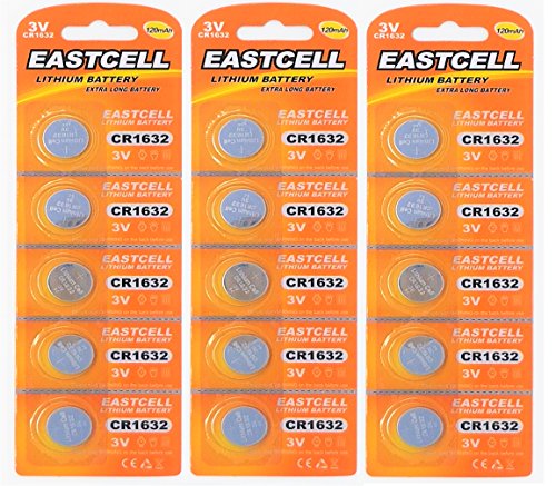 Eastcell, 15 batterie a bottone al litio CR1632, 3 V, 120 mAh (3 blister da 5 batterie), monouso, prodotto di marca (FBA)