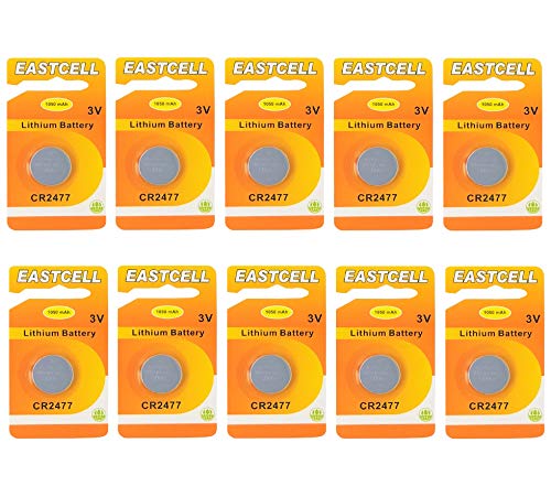 EASTCELL 10 pile a bottone al litio CR2477, 3 V, 1050 mAh, 10 pezzi (10 x blister monouso)