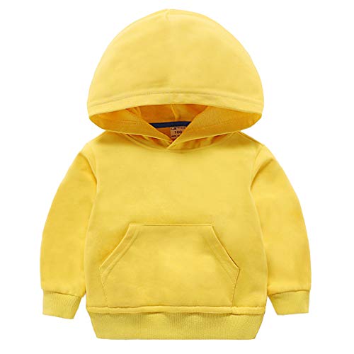 Eastern Corridor-EU Bambino Ragazze Manica Lunga Basic Solid Hoodie Pullover Felpa Sportiva Top con Tasche Abiti Giallo 2-3 Anni