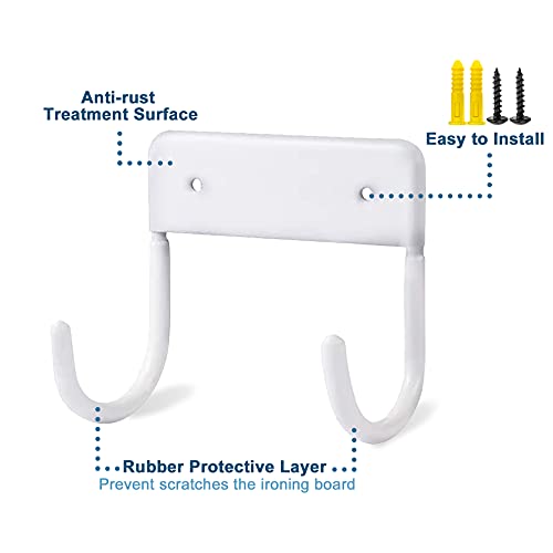 Forte e durevole: realizzato in ferro di alta qualità, superficie con trattamento antiruggine e ganci in gomma per evitare graffi. Il gancio per asse da stiro è resistente e può durare per diversi anni.