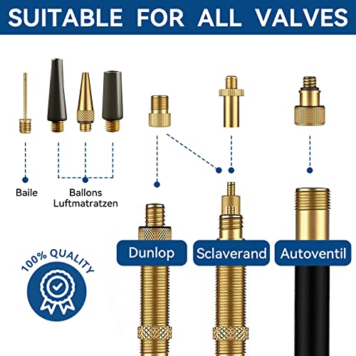 【100% TIGHT & ROBUST】Il materiale resistente alla corrosione e le guarnizioni in gomma di alta qualità degli adattatori della valvola garantiscono un gonfiaggio particolarmente affidabile e a prova di errore anche dopo molto tempo.